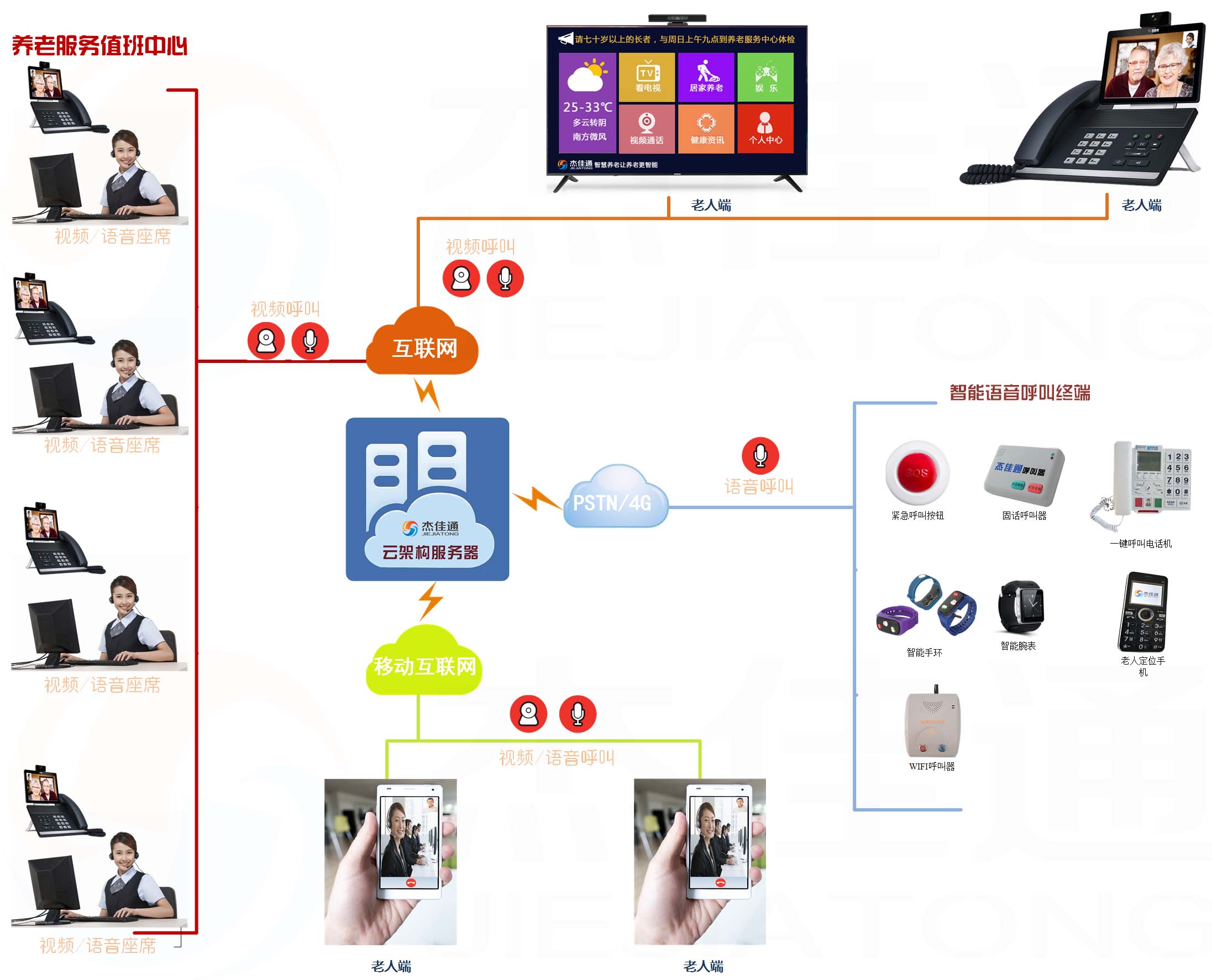 杰佳通自主研發的智慧養老平臺中把可視化功能完美應用于老人需求提交,看得見的養老服務--視頻應用在智慧養老平臺中得到充分體現,老人可以通過“智能手機”、“電視”、“平板電腦”進行可視化(視頻)呼叫服務中心或者服務商和子女。