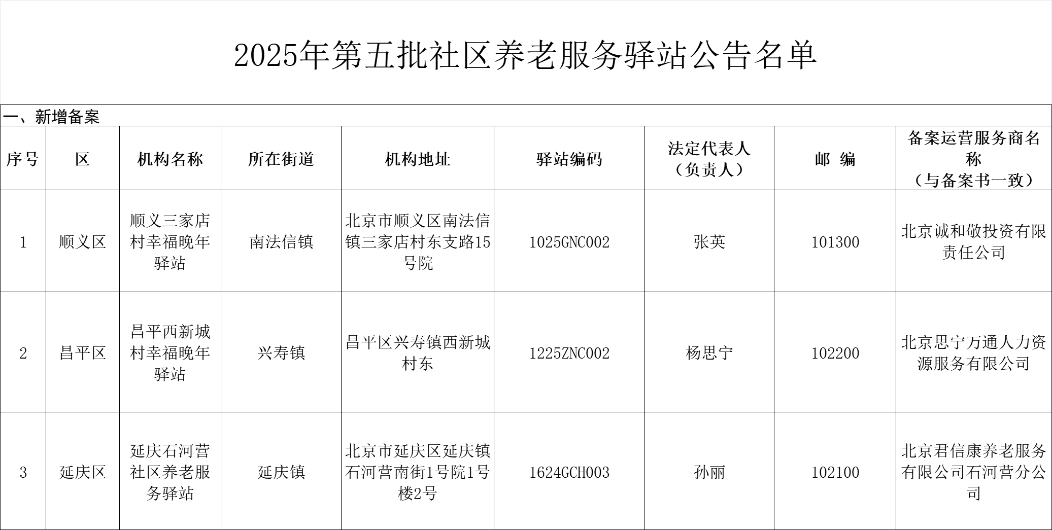 - 2025 年第五批北京社區養老服務驛站備案公告