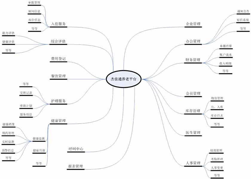 杰佳通機(jī)構(gòu)養(yǎng)老智慧平臺(tái),即養(yǎng)老院管理系統(tǒng),是經(jīng)過(guò)20年的完善,主要應(yīng)用于:地產(chǎn)養(yǎng)老、CCRC養(yǎng)老社區(qū)、醫(yī)養(yǎng)結(jié)合、養(yǎng)老院、敬老院、養(yǎng)老福利院、老年公寓、老年康復(fù)中心、酒店式養(yǎng)老公寓等。功能包括--集人事管理、倉(cāng)庫(kù)管理、老人管理、護(hù)理管理、費(fèi)用管理、老人銀行、接待管理、變更記錄、統(tǒng)計(jì)查詢、健康監(jiān)控、智能呼叫、基礎(chǔ)管理等綜合管理為一體的信息化管理平臺(tái),有幾百個(gè)子模塊,涵蓋了機(jī)構(gòu)養(yǎng)老的方方面面,可以本地化部署,可以云服務(wù)器部署。通過(guò)該系統(tǒng),養(yǎng)老機(jī)構(gòu)可將各職能部門、服務(wù)單元以及外部市場(chǎng)連成一個(gè)有機(jī)整體,進(jìn)行快速、高效的信息收集和業(yè)務(wù)處理,為養(yǎng)老機(jī)構(gòu)的管理和服務(wù)提供適時(shí)、準(zhǔn)確、可靠的決策依據(jù),提高經(jīng)營(yíng)管理效能,增強(qiáng)養(yǎng)老機(jī)構(gòu)的核心競(jìng)爭(zhēng)力。