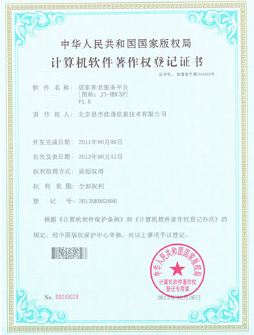 八、具有多項核心的養(yǎng)老平臺計算機軟件知識產(chǎn)權(quán)證書
