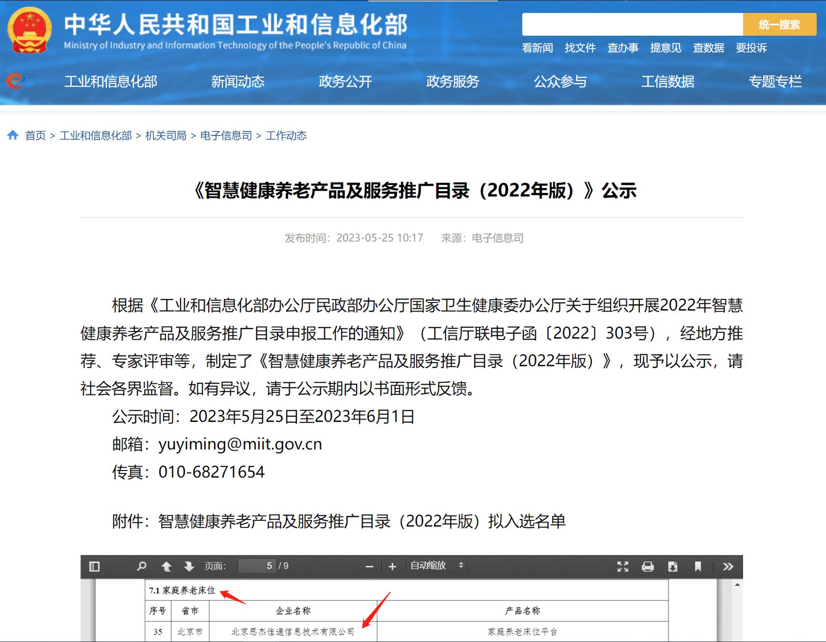 杰佳通家庭養(yǎng)老床位平臺平臺入選國家三部委《智慧健康養(yǎng)老產(chǎn)品及服務(wù)推廣目錄(2022年版)》