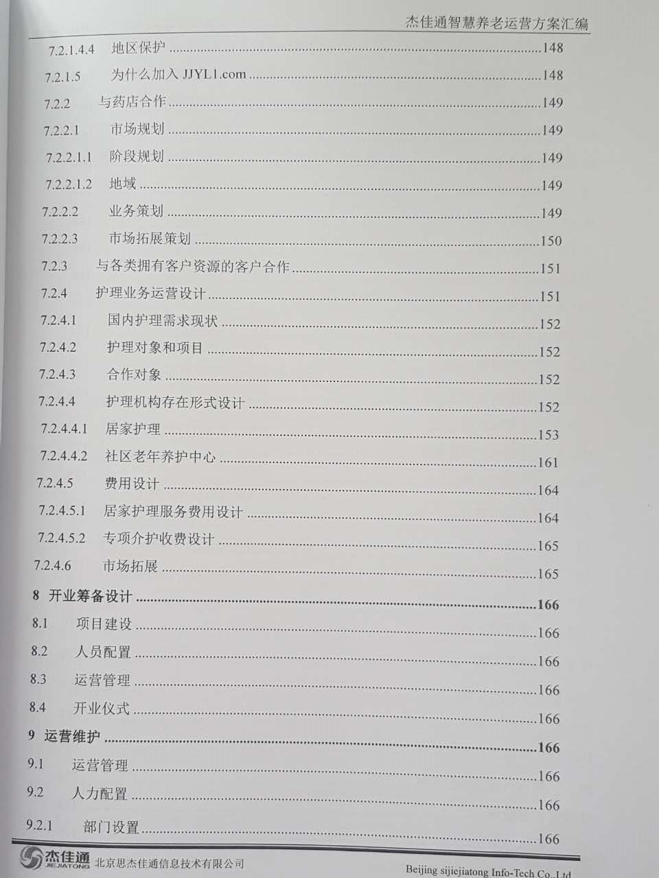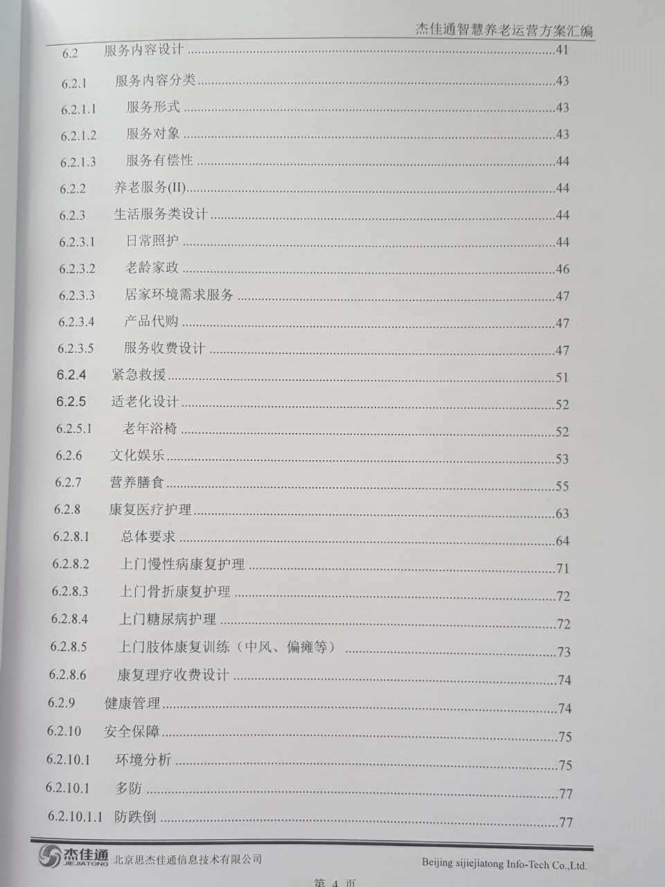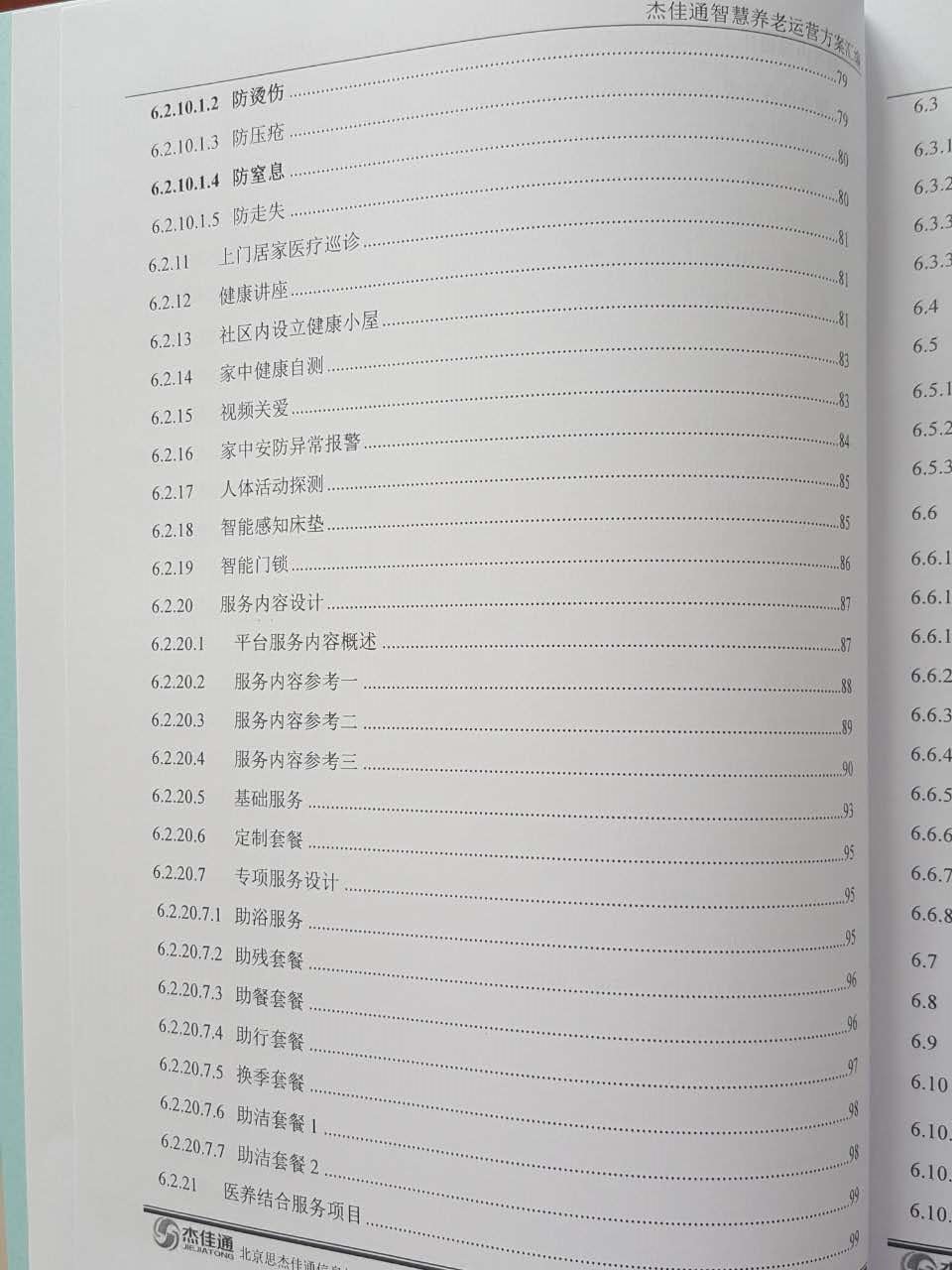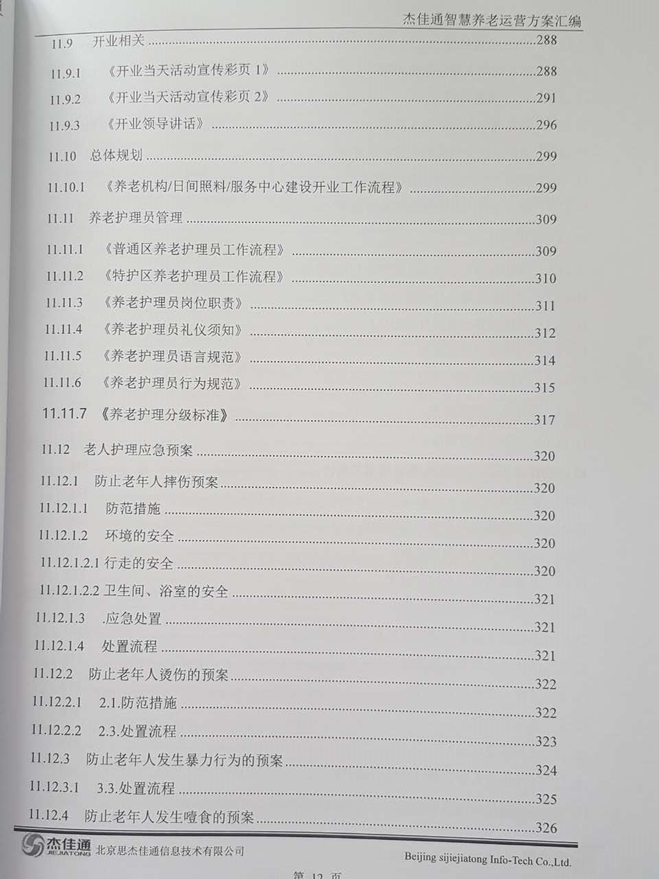 杰佳通專注智慧養(yǎng)老平臺14年,基于多年養(yǎng)老平臺開發(fā)經(jīng)驗,和幾百家客戶運營經(jīng)驗,編制了七百多頁的《智慧養(yǎng)老平臺運營匯編》(還在陸續(xù)完善中),供我們的客戶實操參考,幫助客戶少走彎路,快速盈利。