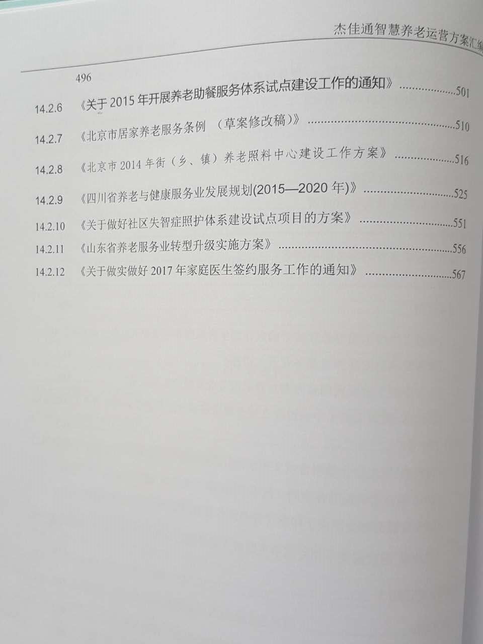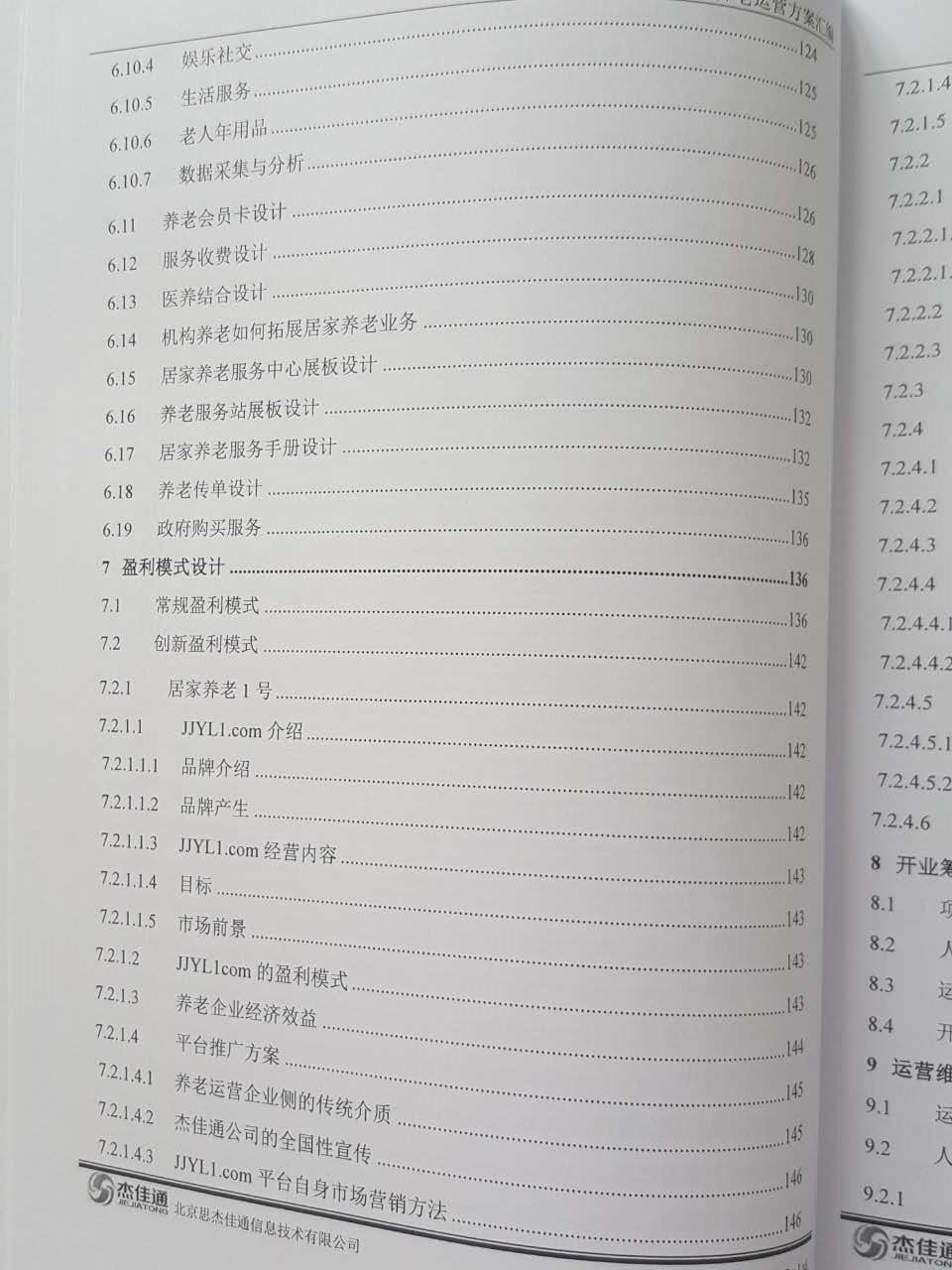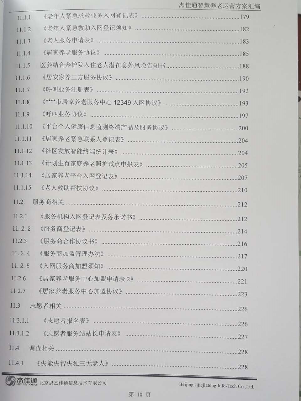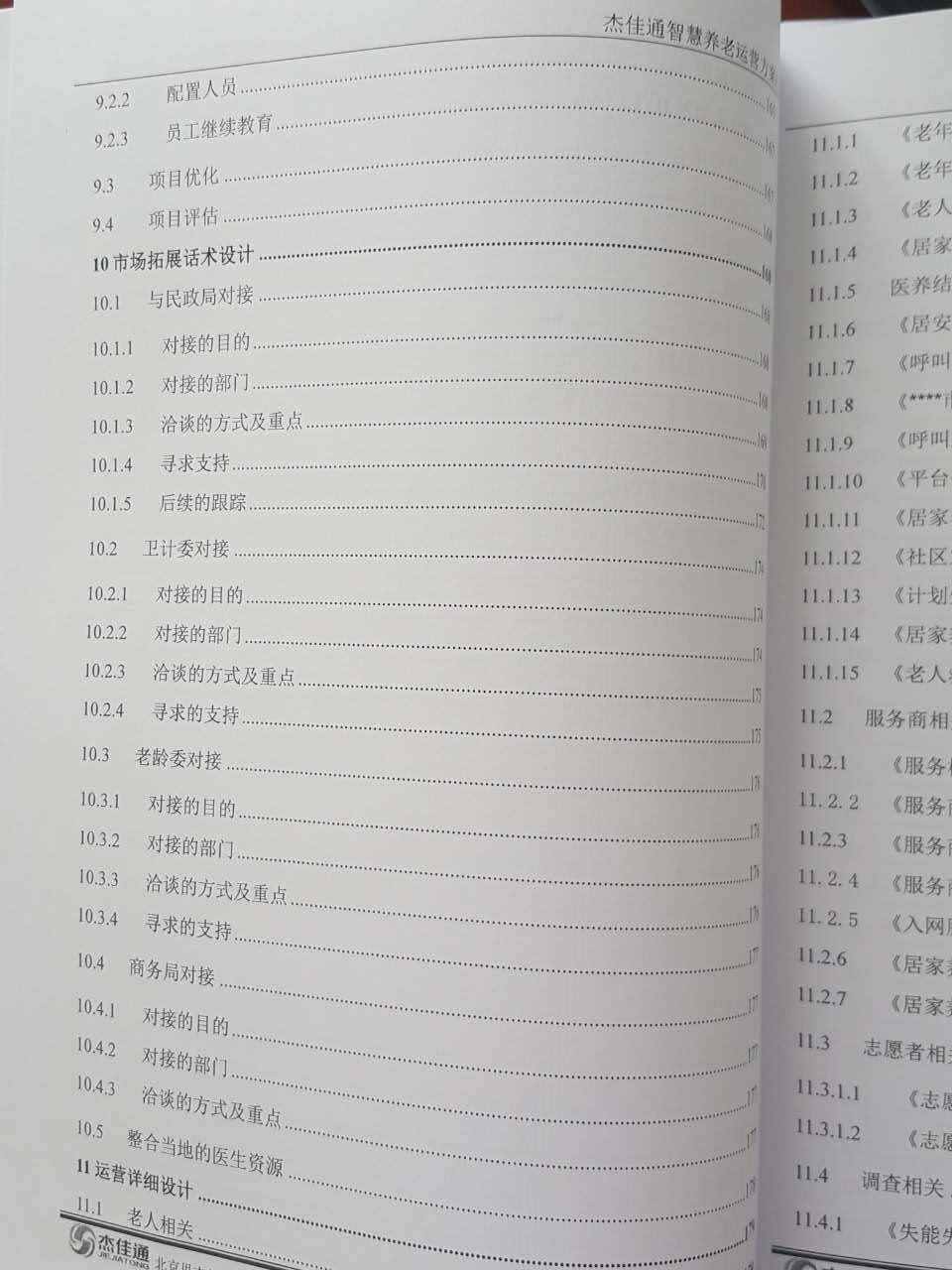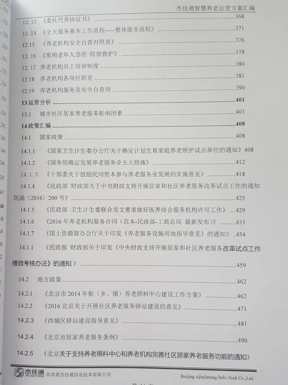 杰佳通專注智慧養(yǎng)老平臺14年,基于多年養(yǎng)老平臺開發(fā)經(jīng)驗,和幾百家客戶運營經(jīng)驗,編制了七百多頁的《智慧養(yǎng)老平臺運營匯編》(還在陸續(xù)完善中),供我們的客戶實操參考,幫助客戶少走彎路,快速盈利。